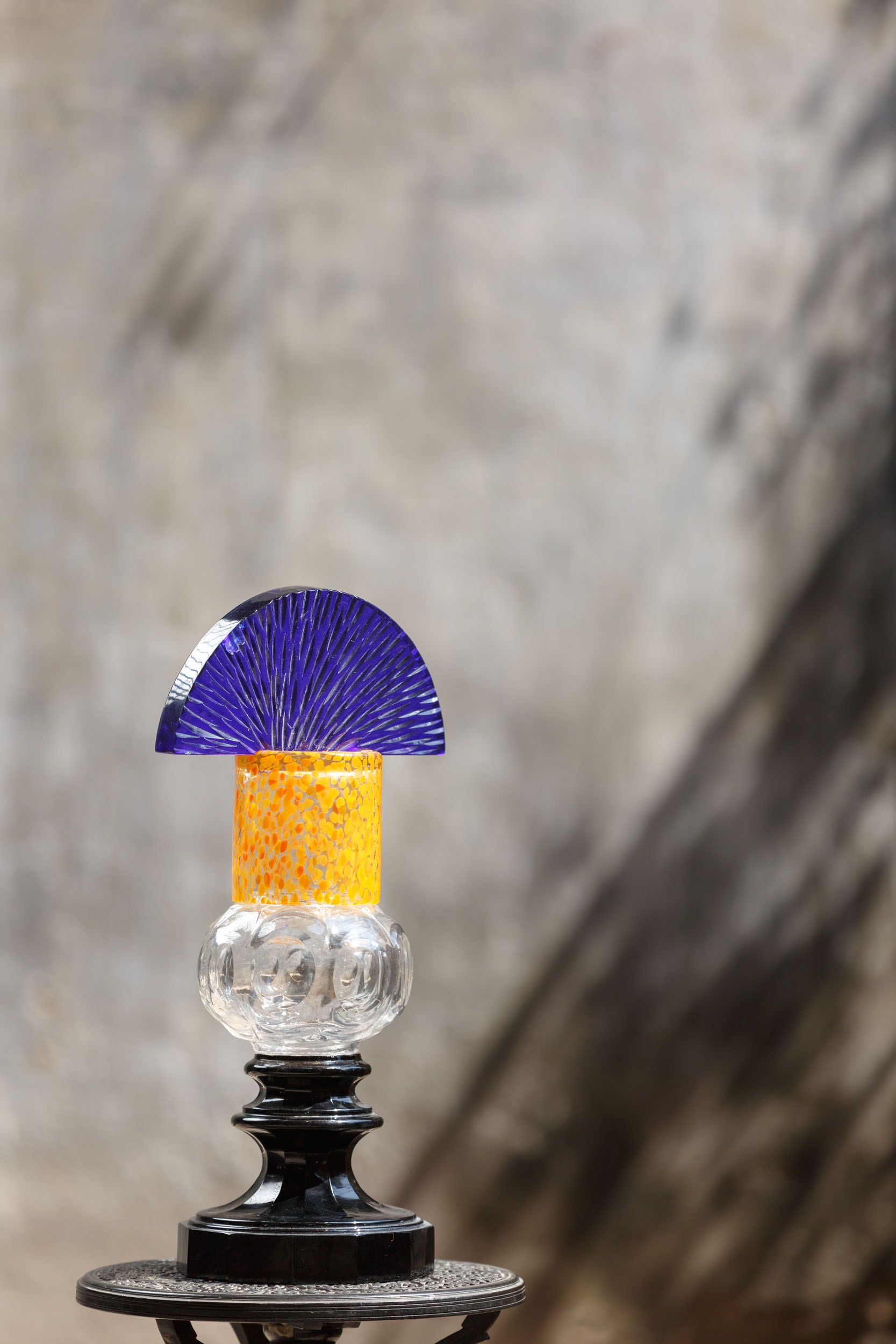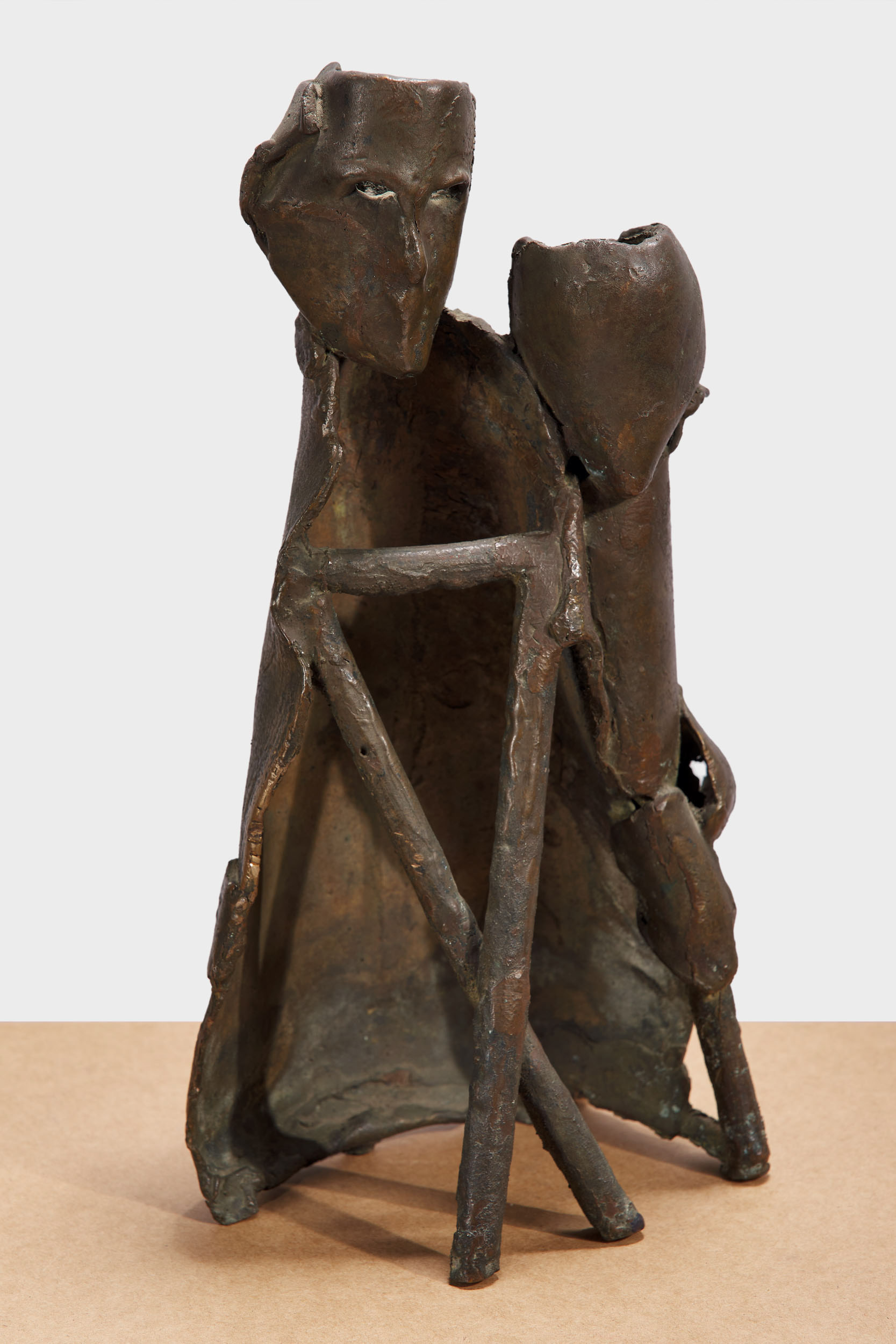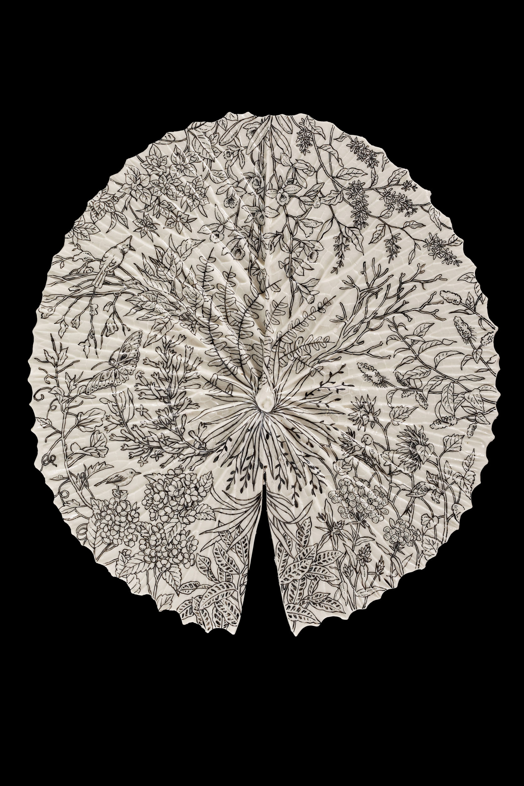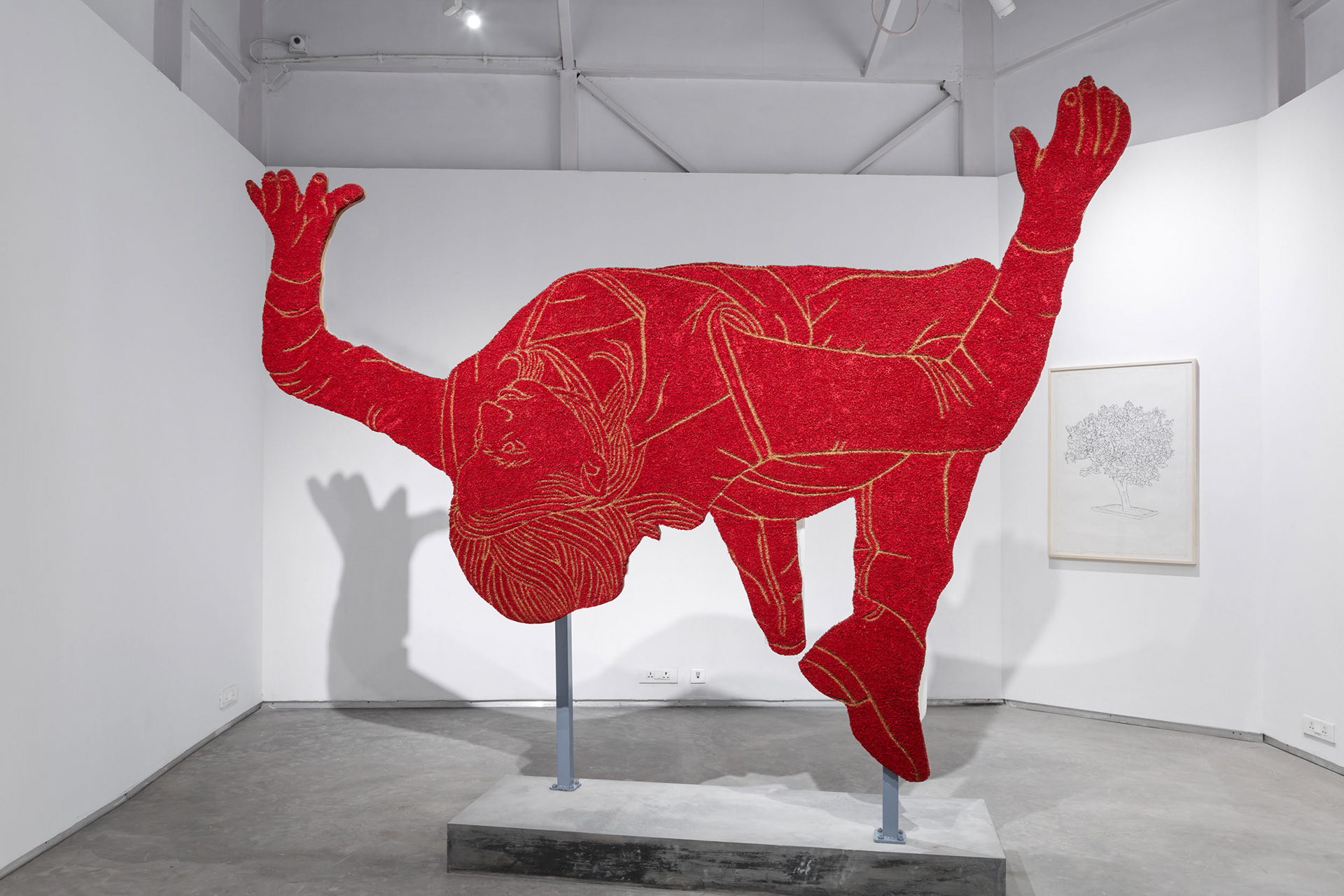 A diverse collection of artistic sculptures, including hanging, suspended, and textured sculptures, displayed in various indoor and gallery settings.